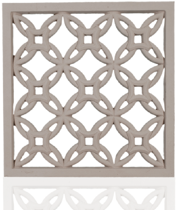 GRC Jaali is cement based composite material with alkali resistant fibers that are randomly dispersed through the product.